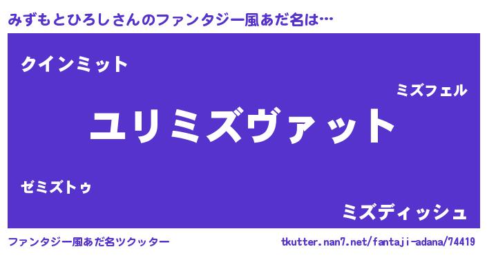 | 男性向けラノベタイトル風あだ名 | 『みずもとひろし~年齢イコール彼女いない歴の魔法使い~』 |