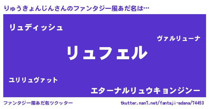 | 男性向けラノベタイトル風あだ名 | 『りゅうきょんじんの憂鬱』 |