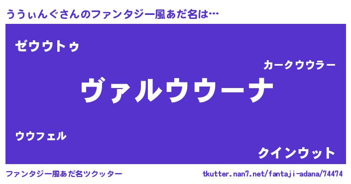 | 男性向けラノベタイトル風あだ名 | 『魔弾の王とううぃんぐ』 |