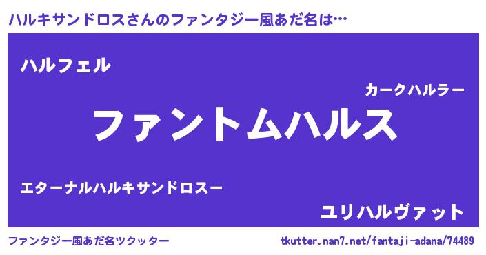 | ヒーロー風カッコイイあだ名 | 『魔戒騎士ハル』『ネオハルキサンドロス』 |