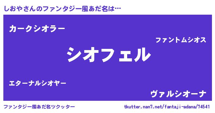 | 自動車の名前っぽいあだ名 | 『シオティマ』『フェシーオ』 |