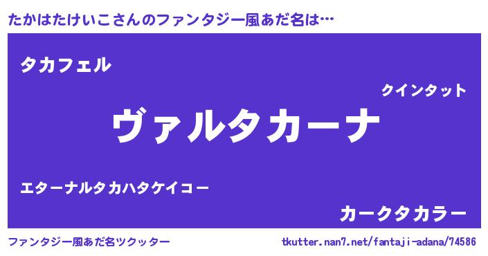 | 男性向けラノベタイトル風あだ名 | 『この素晴らしい世界にたかはたけいこを!』 |