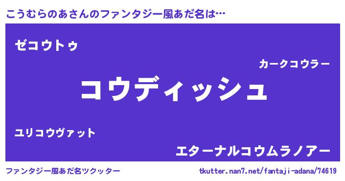| 男性向けラノベタイトル風あだ名 | 『こうむらのあという概念が存在しない退屈な世界 』 |