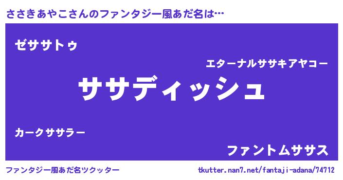 | ヒーロー風カッコイイあだ名 | 『ネオササキアヤコ』『幻影騎士ササ』 |