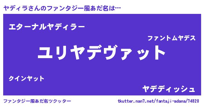 | 男性向けラノベタイトル風あだ名 | 『転生したらヤディラだった件』 |