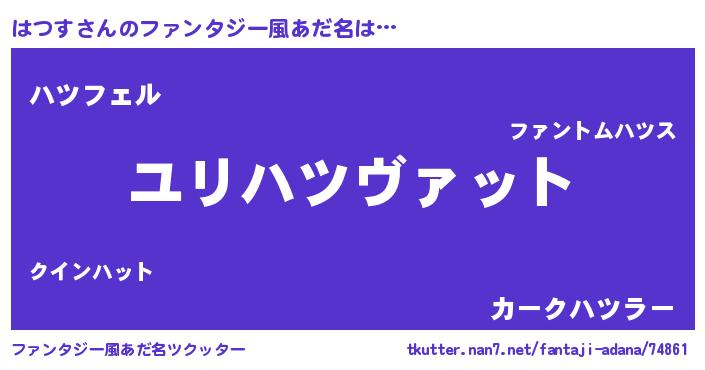 | ヒーロー風カッコイイあだ名 | 『スーパーハツス』『幻影騎士ハツ』 |