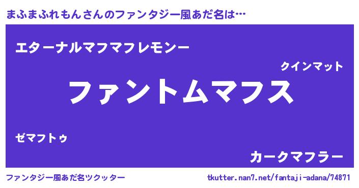 | 男性向けラノベタイトル風あだ名 | 『まふまふれもんの嫁は女の子じゃないと思った?』 |