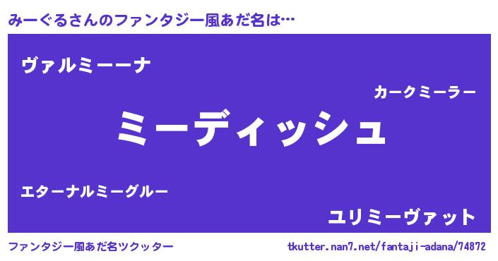 | 意味不明あだ名 | 『永久保存みーぐる』『自称みーぐる』 |