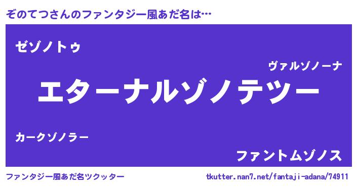 | 女子向けラノベタイトル風あだ名 | 『ぞのてつ伯爵の花嫁』『闇のぞのてつ』 |