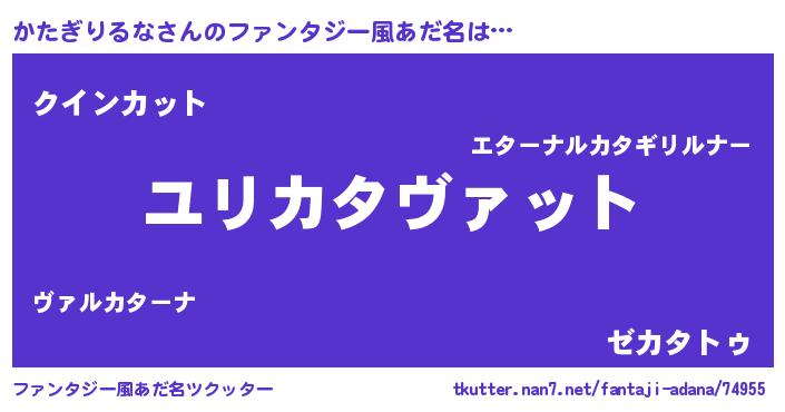 | 男性向けラノベタイトル風あだ名 | 『転生したらかたぎりるなだった件』 |