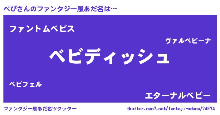 | 男性向けラノベタイトル風あだ名 | 『べびという概念が存在しない退屈な世界 』 |