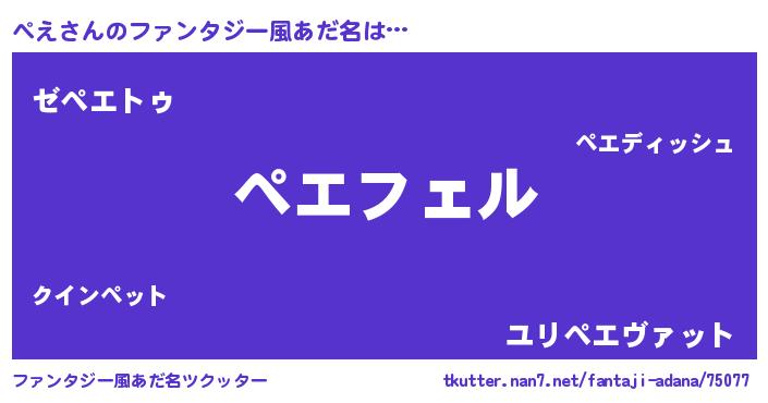 | 意味不明あだ名 | 『ペロリンぺえ』『自称ぺえ』 |