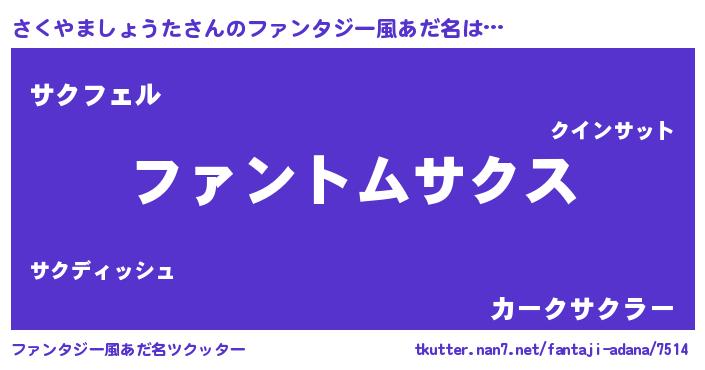 | 男性向けラノベタイトル風あだ名 | 『さくやましょうたの嫁は女の子じゃないと思った?』 |