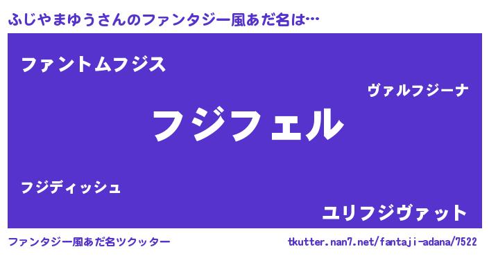 | 女子向けラノベタイトル風あだ名 | 『(仮)ふじやまゆうのやんごとなき事情』 |