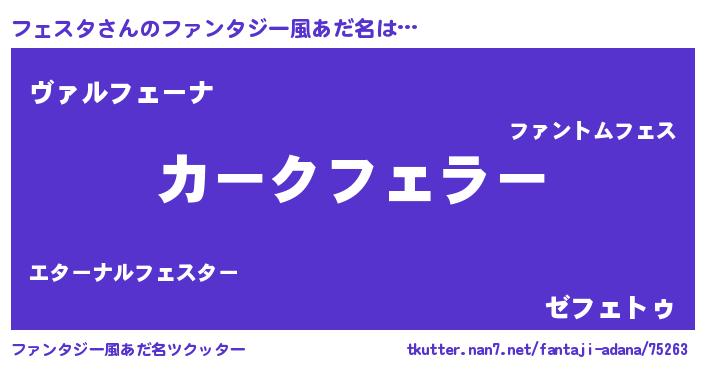 | 男性向けラノベタイトル風あだ名 | 『緋弾のフェスタ』『魔弾の王とフェスタ』 |