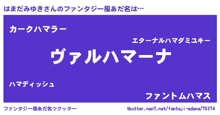 | 男性向けラノベタイトル風あだ名 | 『魔弾の王とはまだみゆき』 |