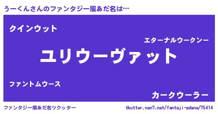 | 女子向けラノベタイトル風あだ名 | 『うーくんの玉の輿計画!』 |