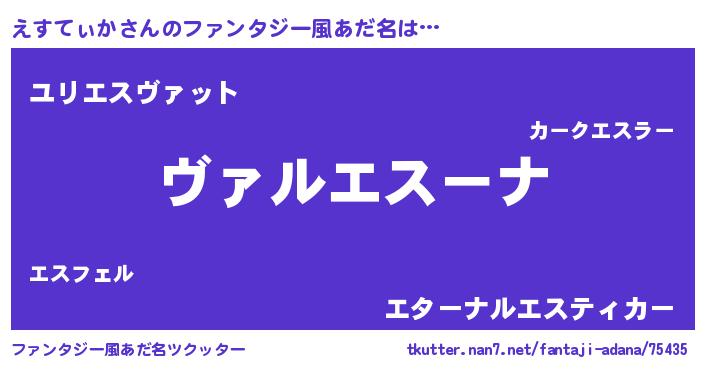 | 男性向けラノベタイトル風あだ名 | 『魔弾の王とえすてぃか』 |