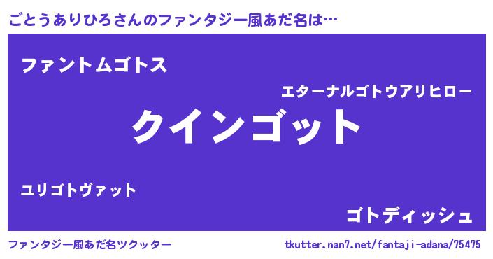 | 男性向けラノベタイトル風あだ名 | 『おまえをオタクにしてやるから、俺をごとうありひろにしてくれ! 』 |