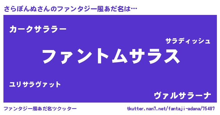 | 男性向けラノベタイトル風あだ名 | 『さらぽんぬに滅ぼされるだけの簡単なお仕事です』 |