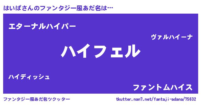 | ヒーロー風カッコイイあだ名 | 『スーパーハイパ』『ウルトラはいぱマン』 |