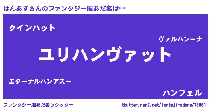 | 男性向けラノベタイトル風あだ名 | 『はんあす~年齢イコール彼女いない歴の魔法使い~』 |