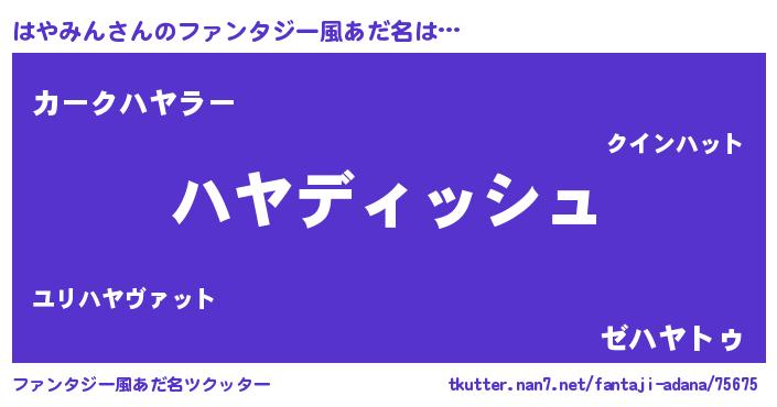 | 女子向けラノベタイトル風あだ名 | 『はやみんの契約王妃』『闇のはやみん』 |