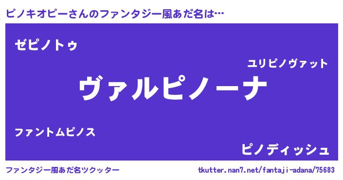 | 男性向けラノベタイトル風あだ名 | 『この素晴らしい世界にピノキオピーを!』 |