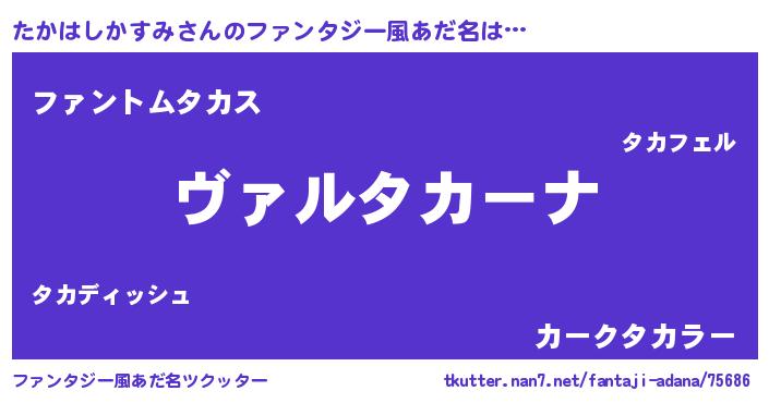 | 男性向けラノベタイトル風あだ名 | 『魔弾の王とたかはしかすみ』 |