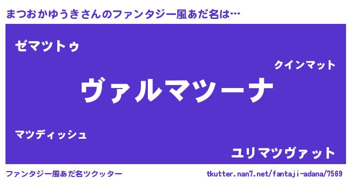 | 男性向けラノベタイトル風あだ名 | 『この素晴らしい世界にまつおかゆうきを!』 |