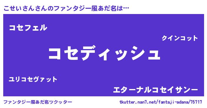 | 男性向けラノベタイトル風あだ名 | 『こせいさんという概念が存在しない退屈な世界 』 |