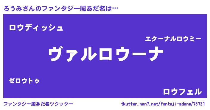 | 男性向けラノベタイトル風あだ名 | 『この素晴らしい世界にろうみを!』 |
