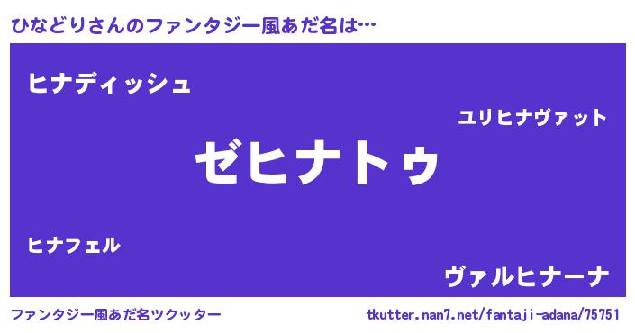 | ポケモン風あだ名 | 『ヒナセウス』『ゼニヒナ』 |