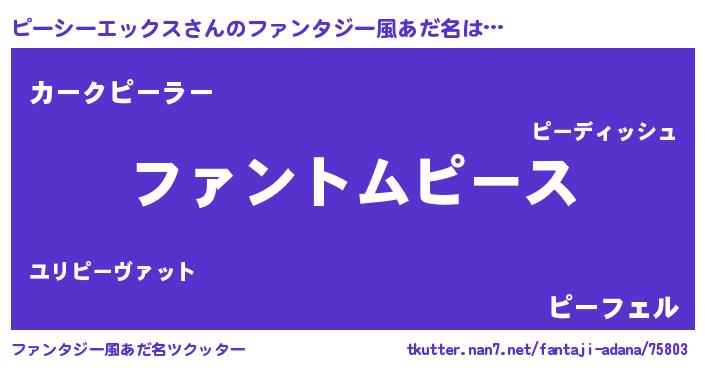 | 男性向けラノベタイトル風あだ名 | 『ピーシーエックスの嫁は女の子じゃないと思った?』 |