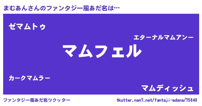 | 女子向けラノベタイトル風あだ名 | 『まむあん姫と円卓の騎士』 |
