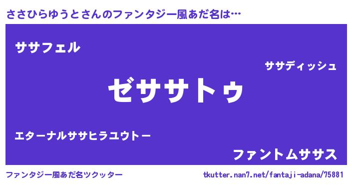 | 意味不明あだ名 | 『自称ささひらゆうと』 |