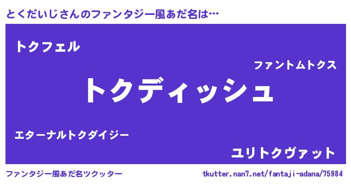 | 胡散臭い通販商品みたいなあだ名 | 『来世でも幸せになれる健康食品…その名も「とくだいじ」』 |