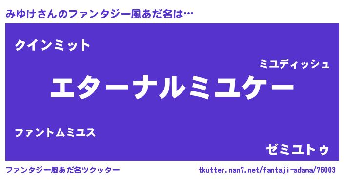 | 欧米人風あだ名 | 『みゆけクリステル』『ダニエルみゆけ』 |