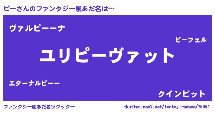 | 女子向けラノベタイトル風あだ名 | 『ピーの玉の輿計画!』『死神ピーの再婚』 |