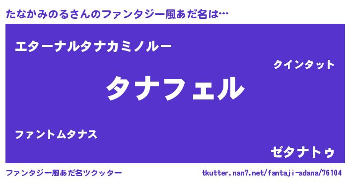 | 自動車の名前っぽいあだ名 | 『タナティマ』『タスラー』『タンR』 |