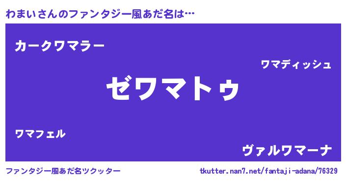 | 男性向けラノベタイトル風あだ名 | 『Re:わまいから始める異世界生活』 |
