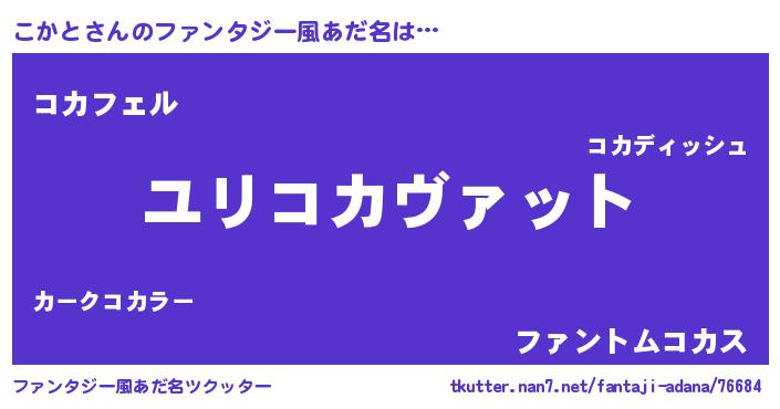 | ヒーロー風カッコイイあだ名 | 『スーパーコカト』『幻影騎士コカ』 |