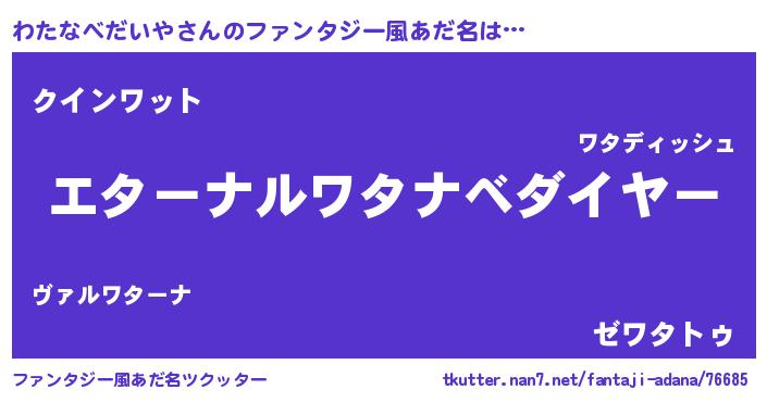 | 女子向けラノベタイトル風あだ名 | 『わたなべだいやの雑貨屋さん』 |