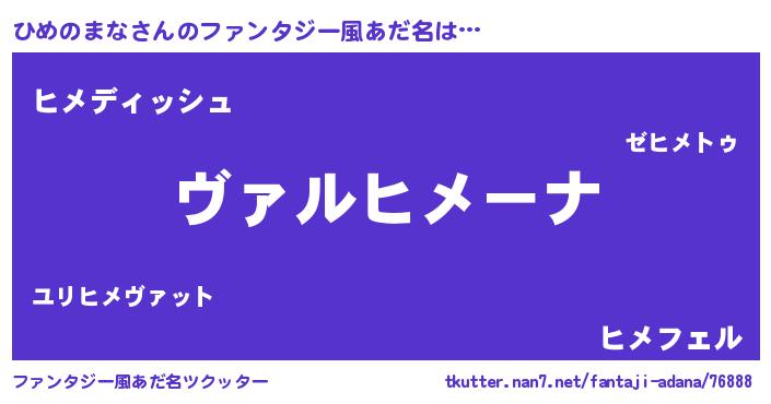 | ヘコむあだ名 | 『ひめのまな(小並感)』『ひめもー』 |