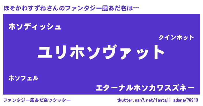 | 男性向けラノベタイトル風あだ名 | 『ホソカワスズネスレイヤー』 |