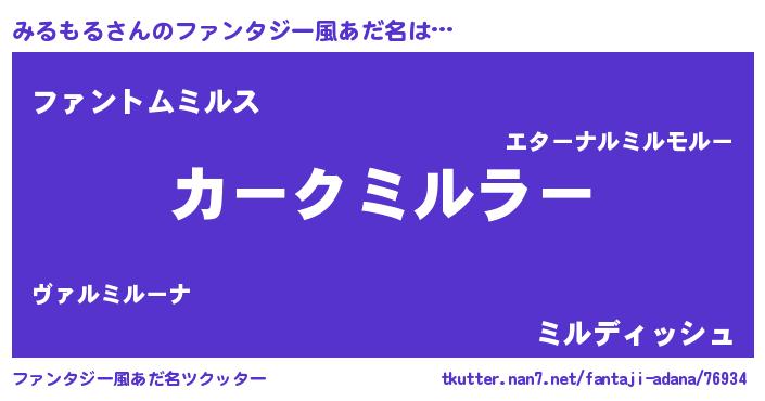 | 男性向けラノベタイトル風あだ名 | 『緋弾のミルモル』『魔弾の王とみるもる』 |