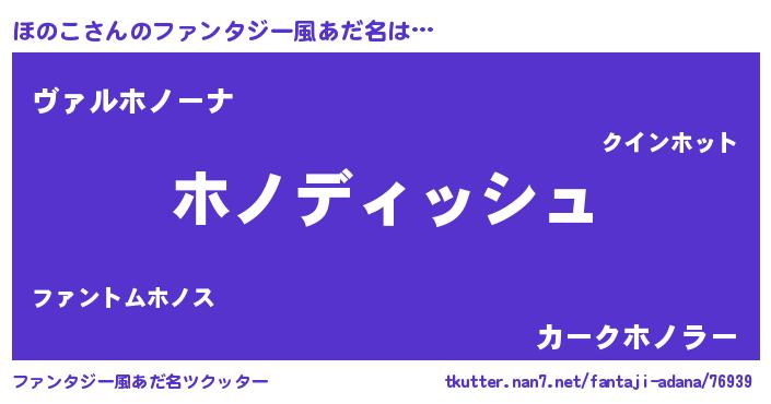 | ヘコむあだ名 | 『ほのこ(爆)』『ほのお』『なまこ酢』 |