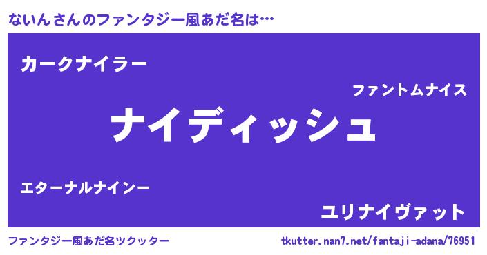 | ヒーロー風カッコイイあだ名 | 『ネオナイン』『黄金騎士ナイ』 |
