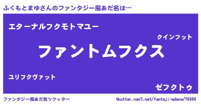 | ヒーロー風カッコイイあだ名 | 『幻影騎士フク』『究極戦士フクモトマユ』 |
