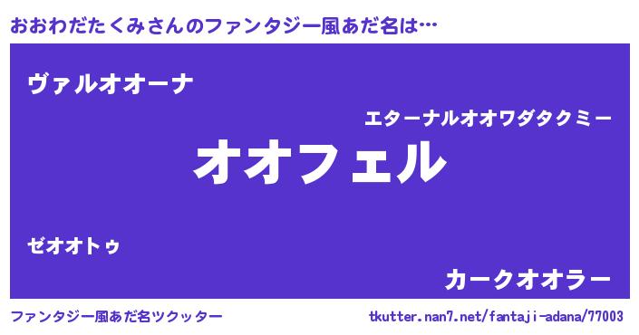 おおわだたくみさんのファンタジー風あだ名をツクッター!